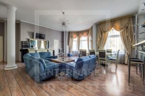 ID 30639: Прекрасная 5-комнатная квартира в красивом дореволюционном доме после полной реконструкции. Современный ремонт в классическом стиле. Кондиционирование, посудомоечная машина, видеодомофон, сигнализация. Общая площадь: 165 кв. м. Планировка: гостиная-кухня с эркером, три спальни, кабинет (можно сделать четвертую спальню), гардеробная с окном. Из гостиной и кабинета окна выходят на улицу Знаменка, из спален — в тихий двор. В подъезде дежурит консьерж, видеонаблюдение, парковка в огороженном дворе за отдельную плату. Метро "Арбатская" в пешей доступности от дома. С детьми можно.