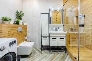 -душевая кабина, стиральная машина, фен;