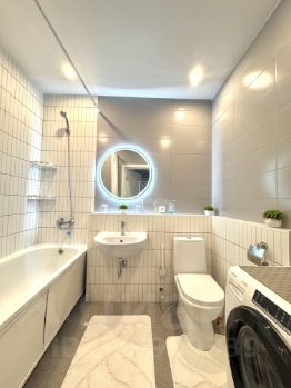 Есть вся необходимая современная новая бытовая техника и мебель: холодильник, плита, духовка, посудомоечная машина, вытяжка, телевизор, чайник, микроволновая печь, стиральная машина, кондиционер (установят дополнительно). Большое количество мест для хранения вещей. Заезжайте и живите!