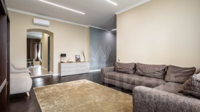 Спланирована просторная гостиная, кухня с обеденной зоной, 2 спальни, санузел с душевой, гостевой санузел, прихожая. Квартира полностью меблирована и оборудована бытовой техникой, установлены кондиционеры. Окна гостиной и спален выходят на улицу, окна кухни ориентированы в тихий двор. Предусмотрено машиноместо в закрытом дворе.