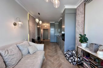 Выполнен качественный дизайнерский ремонт с использованием премиальных материалов. Интерьер продуман до мелочей: ничего лишнего, только комфорт, эстетика и функциональность. Отдельная спальня с полноценной зоной хранения располагает к уединению и спокойствию.