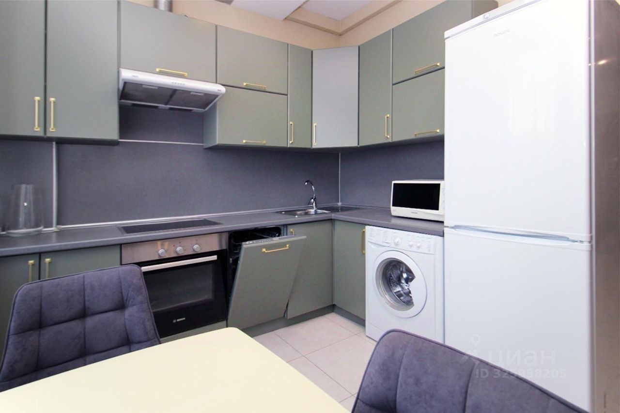 Удобная кухня с дополнительным спальным местом, новый диван раскладывается. Встроенная техника, плита индукционная, духовка, микроволновка, полноценная вытяжка (не фильтр). Действующая система тёплого пола.