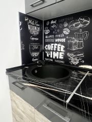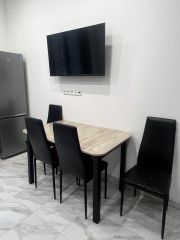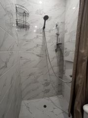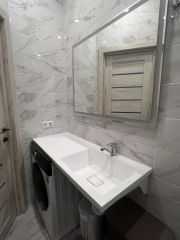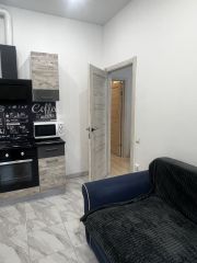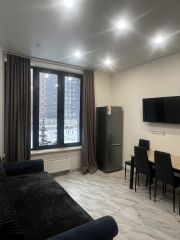 Полная готовность: Квартира полностью обустроена для жизни. К вашим услугам скоростной интернет, вся необходимая техника (холодильник, микроволновка, стиральная машинка), стильная душевая кабина и красивые окна в пол, наполняющие пространство светом.
