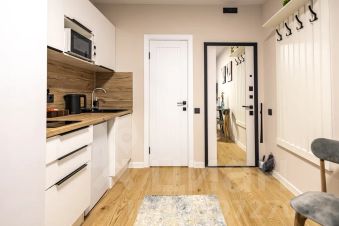 Наш фаворит — светлая студия с дизайнерским ремонтом в ЖК "Легендарный". Всего 7 минут неспешным шагом до метро, а цена — одно из главных преимуществ.
