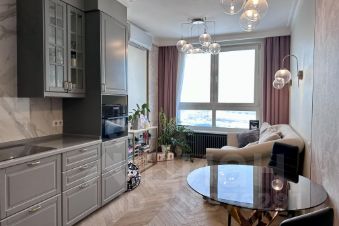 Выполнен качественный дизайнерский ремонт с использованием премиальных материалов. Интерьер продуман до мелочей: ничего лишнего, только комфорт, эстетика и функциональность. Отдельная спальня с полноценной зоной хранения располагает к уединению и спокойствию.