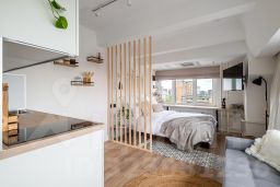 Уютная квартира-студия, общей площадью 27 кв.м. Большие светлые окна...много окон! Красивый вид на ночной город, которым можно наслаждаться, расположившись на удобном подоконнике рядом с кроватью, или вдохновляться сидя за рабочим столом!