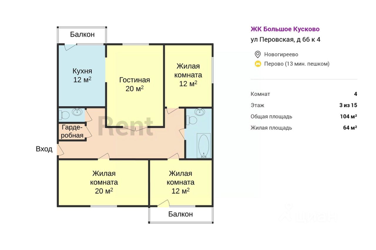 В ЖК "Большое Кусково" неподалеку от метро "Перово" предлагается четырехкомнатная квартира. Качественный ремонт. Комнаты располагают мебелью, в том числе шкафами для гардероба. Кухня укомплектована бытовой техникой, в том числе посудомоечной машиной. Для поддержания порядка есть гардеробная. Оборудован гостевой санузел. Два застекленных балкона, окна выходят на две стороны. Установлена сплит-система.