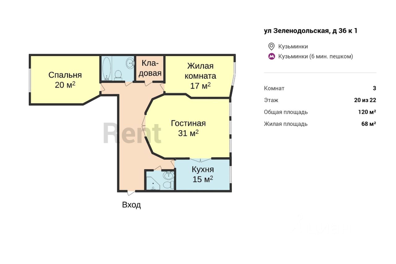 БЕЗ КОМИССИИ ДЛЯ АРЕНДАТОРА. Предлагается просторная трехкомнатная квартира в современном доме в 4-5 минутах от метро "Кузьминки". В геометрии комнат преобладают плавные линии. Гостиная, сообщающаяся с яркой кухней, а также изолированные спальня и жилая комната располагают удобной мебелью. Кухонный гарнитур - с полным комплектом бытовой техники, включая посудомоечную машину. Оборудована кладовая. Установлены водонагреватель, теплые полы и сплит-система.