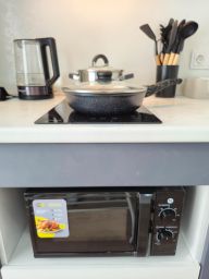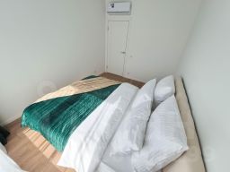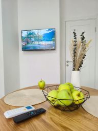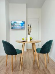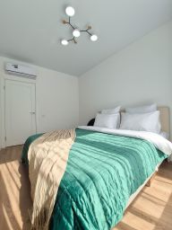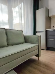 Комфорт проживания: Просторные спальные зоны оборудованы удобной двуспальной кроватью размером 160200 см и раскладным диваном 140200 см, что обеспечивает комфортный отдых для компании до 4 человек. Вас ждёт полностью оборудованная кухня-гостиная с современной техникой: плита, холодильник, электрочайник, полный набор посуды и столовых приборов.