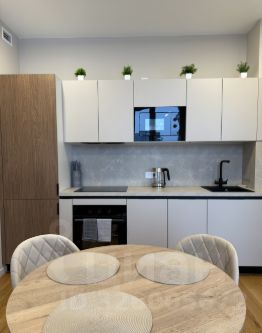Высокие потолки обеспечивают пространство и легкость, для комфортного проживания в имеется вся необходимая мебель, техника и посуда. В квартире есть теплые полы, кухня оснащена вытяжкой, духовым шкафом, встроенным холодильником, микроволновой печью, посудомоечной машиной и системой фильтрации воды.