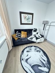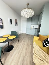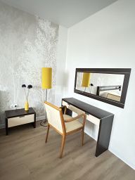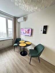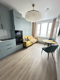 Общая площадь квартиры — 48 кв. м, жилая — 26 кв. м, кухня — 16 кв. м. Комнаты изолированы, что обеспечивает комфорт и уединение. Совмещённый санузел. Все необходимое для жизни есть. В доме консъерж и охрана.