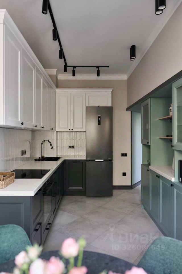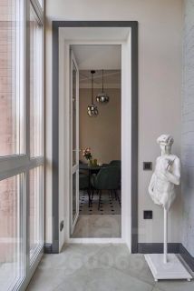 Из кухни и гостиной есть выходы на лоджию с панорамным остеклением. В квартире выполнен авторский ремонт в светлой цветовой гамме, выдержанный в современном стиле. Высокие потолки и большие окна создают ощущение простора, наполняя помещения светом и воздухом.