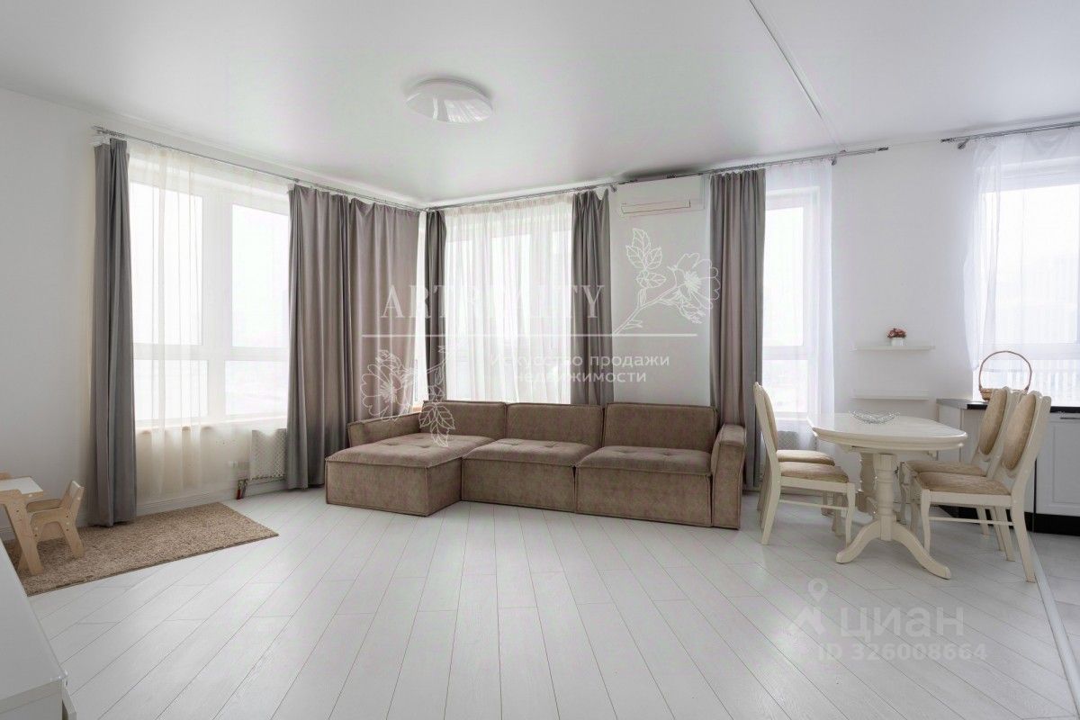 Две изолированные комнаты (одну можно использовать как кабинет), кухня-гостиная, два совмещённых санузла (в одном душевая кабинка, во втором ванна), просторный коридор с местами для хранения вещей.