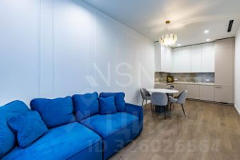 В апартаментах выполнена премиальная отделка. Панорамные окна и высокие потолки дают ощущен6ие пространства и света. Апартаменты полностью укомплектованы мебелью и техникой. Установлена стиральная и посудомоечная машина, система кондиционирования. Из окон открывается вид на улицу.