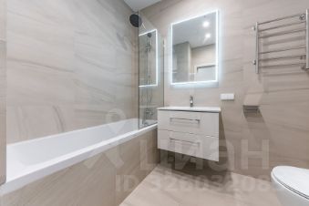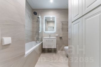 Из техники представлены: электрическая плита, духовой шкаф, встроенный холодильник, стиральная машина с сушкой. Совмещённый санузел - установлена ванна.
