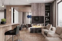 Квартира выполнена в авторском дизайне с использованием высококлассных материалов и продуманной эргономики. Просторные комнаты наполнены естественным светом благодаря большим панорамным окнам, открывающим захватывающий вид на город и природные ландшафты.