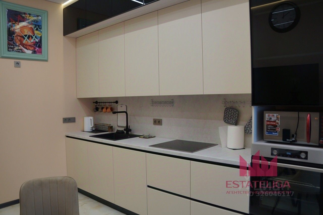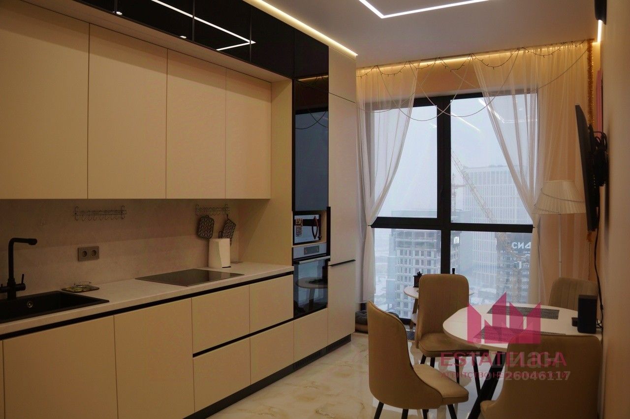 Пространство площадью 46 м² искусно зонировано: здесь гармонично сочетаются просторная кухня-гостиная, уединенная спальня, функциональная гардеробная и стильный совмещенный санузел. Высокие потолки 3.2 метра и панорамные окна наполняют интерьер светом и воздухом. Квартира полностью укомплектована новой мебелью и премиальной техникой, что гарантирует комфортное заселение.
