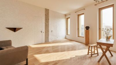 Апартаменты с двумя спальнями общей площадью 87 м² в комплексе клубных особняков "Titul на Серебрянической". Апартаменты с готовой отделкой расположены на пятом этаже в особняке 2 Florin. Интерьер оформлен в приятных светлых тонах. В отделке использованы только натуральные материалы, полы выполнены из массива дуба. Планировка: кухня-гостиная, спальня с двумя встроенными шкафами, угловая спальня с тремя окнами, один совмещённый санузел, холл. Высота потолков 3,3 метра. Из окон открывается вид в сторону набережной и во двор.