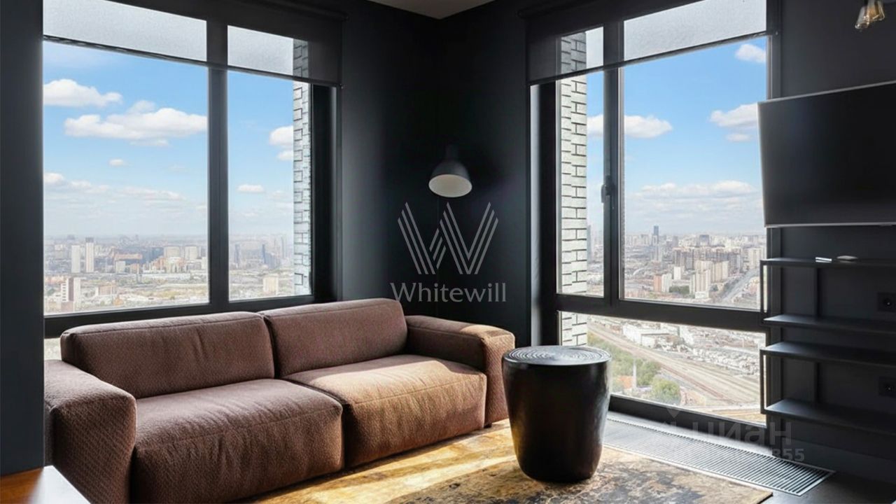 Просторная видовая студия площадью 50 м² в комплексе бизнес-класса "Пресня Сити" в Пресненском районе. Пространство наполнено естественным светом, проникающим сквозь широкоформатные окна. Здесь приятно любоваться огнями оживлённого города, устроившись на мягком диване вечером.