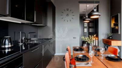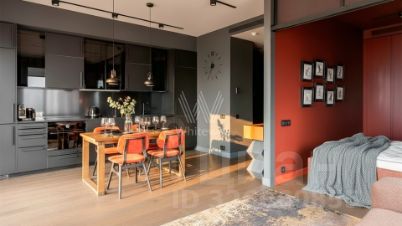 Дизайн-проект квартиры был опубликован в международном журнале Elle Decor. Глубокие оттенки графита и угля придают интерьеру благородство, а винно-терракотовые и коричневые акценты добавляют тепла и уюта. Для вашего комфортного проживания установлена вся необходимая мебель и техника, включая кондиционеры. Планировка включает кухонную зону, лаунж у окна, зону спальни, оформленную стеклянными перегородками и санузел с душевой кабиной.