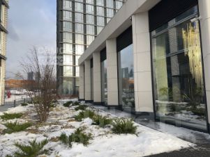 На первых этажах комплекса находятся магазины, кафе, рестораны и сервисные службы, а также коворкинг, фитнес-зал, супермаркет.