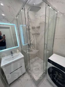 Ванная комната оборудована стиральной машиной, водонагревателем.
