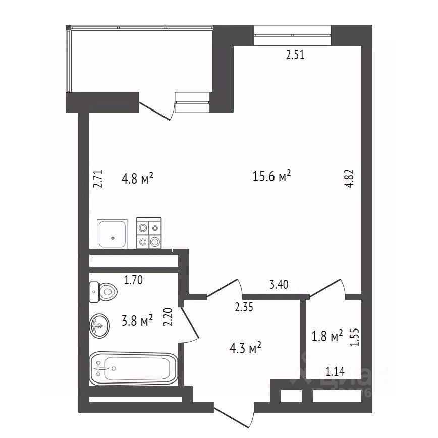 Квартира светлая и теплая, полностью укомплектована всем необходимым для комфортного проживания. Санузел совмещенный, просторный балкон, в квартире есть изолированное кладовое пространство.