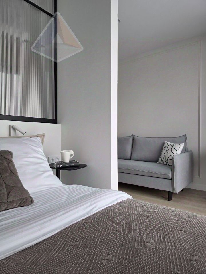 Голосовое управление? Нет проблем! Встроенный холодильник, варочная панель, духовой шкаф, микроволновка, посудомоечная машина, раскладной диван, двуспальная кровать Askona 140200, ТВ, мощный кондиционер над дверью, рабочее место, огромные шкафы для одежды/хозяйственных нужд, датчики протечки в мокрых зонах. Интернет/ТВ отдельно, коммуналка за собственника.