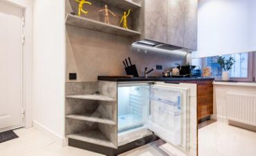 - плита, микроволновка, вытяжка, чайник, холодильник;