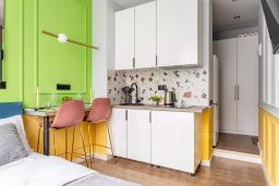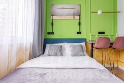 В апартаментах есть все для комфортного проживания: чистая квартира с хорошим ремонтом, выглаженное постельное белье и полотенца. Набор принадлежностей для душа: гель для душа, шампунь, мыло. Стильный кухонный гарнитур со всем необходимым для приготовления любимой домашней еды (техника, кухонные принадлежности, посуда, столовые приборы). Обеденный стол со стульями, удобная двуспальная кровать, современная стиральная машина, чтобы вещи всегда были чистые, ЖК телевизор, фен и утюг