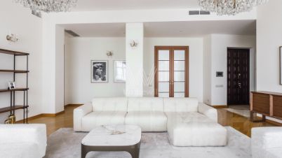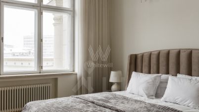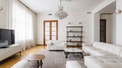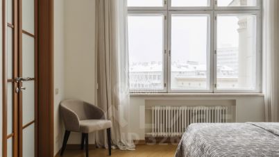 Бонус партнёрам 50%. Просторная квартира площадью 140 м² на знаменитой Тверской улице с видом на Кремль. Выполнена современная отделка в лаконичных светлых тонах. Большие окна, высокие потолки. Планировка: просторная гостиная, кухня-столовая с выходом на балкон, спальня со своим санузлом с душем, вторая спальня, санузел. В мастер-спальне и гостиной совершенно новая мебель. Квартира укомплектована бытовой техникой, установлена система кондиционирования, стиральная и посудомоечная машина. Стихийный паркинг во дворе за шлагбаумом.