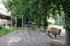 Зелёный двор с детской площадкой. Уединённая и безопасная территория. Идеально для пары, командированного специалиста или путешественника, который ищет в большом городе место для восстановления сил.