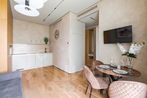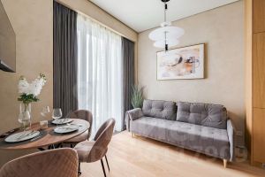 В квартире все продумано до мелочей, кухня-гостиная со всей техникой, мастер-спальня со своей гардеробной, вторая спальня с диваном, сан узел с душевой,в квартире есть все необходимое для комфортного проживания.