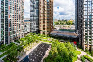 Комплекс включает в себя закрытый частный парк для жильцов площадью 3 Га, фонтаны, детские площадки и открытые общественные пространства.