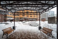 Закрытая, охраняемая территория. Подземный паркинг, машиноместо оплачивается отдельно; стихийная парковка под шлагбаумом во дворе дома