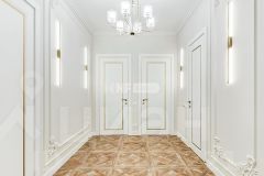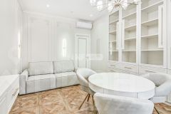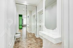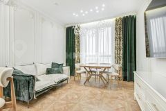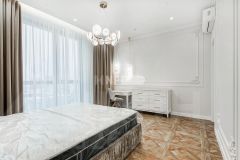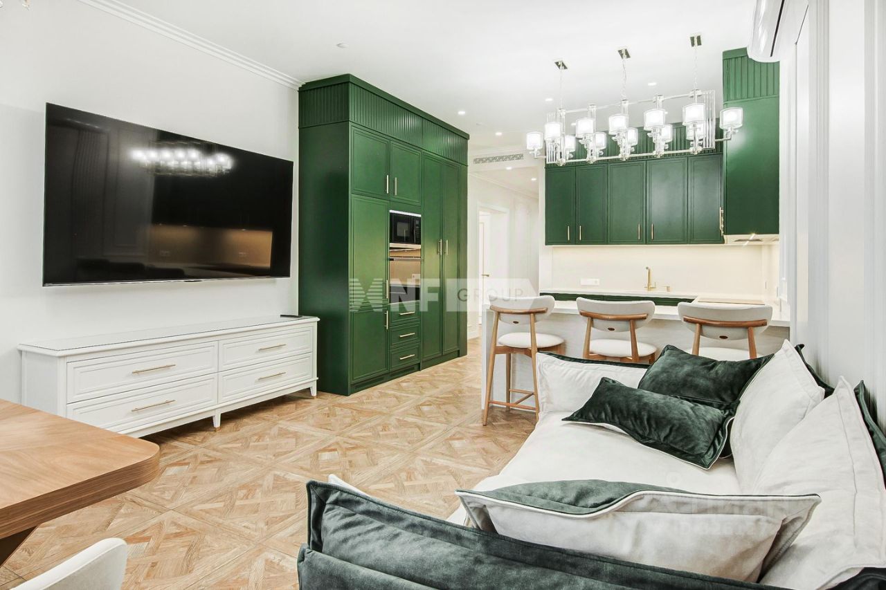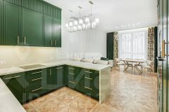 Выполнена отделка в классическом стиле (отделка новая, никто не проживал), апартамент меблирован и оснащен качественной бытовой техникой, системой очистки воздуха и воды, в каждой комнате теплые полы.
