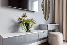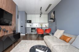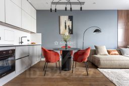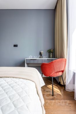 В квартире выполнен дизайнерский ремонт с использованием качественных материалов. Высота потолков 3 метра создаёт ощущение простора и свободы. Квартира полностью укомплектована мебелью, оснащена всей необходимой техникой: кондиционер, холодильник, посудомоечная, стиральная машины, телевизор, микроволновая печь, чайник, утюг, что позволяет новым жильцам сразу заселиться без дополнительных вложений. Окна выходят на улицу, а комнаты изолированы, что обеспечивает комфорт и уединение.