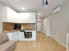 - удобный диван-кровать, стол, вместимый шкаф в коридоре и тумбочка в комнате. Имеются телевизор, кондиционер, холодильник и стиральная машинка, утюг;