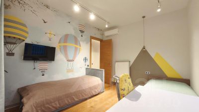 В малой спальне (кабинет или детская) полуторная кровать, шкаф, рабочий столик, ТВ. Вторая спальная (большего размера), сейчас устанавливается мебель, имеет выход на застекленную лоджию. Третья, взрослая спальная, с роскошной кроватью, большим ТВ и фотообоями с деревьями. Везде плотные шторы для комфортного сна. В каждой комнате по кондиционеру.