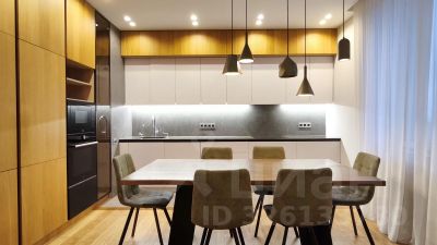В гостиной диван, большой ТВ, обеденный стол. Кухонный гарнитур с духовкой, посудомоечной, вместительным холодильником. Из прихожей налево через затемненную стеклянную дверь проход в огромную гардеробную.