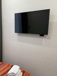 В апартаментах мы сможете отдохнуть и набраться сил на кровати с ортопедическим матрасом 140х200. Прекрасное сатиновое белое постельное белье позволит вам отлично выспаться.