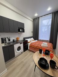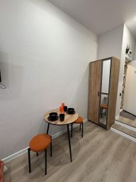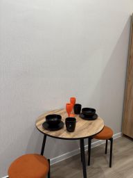 За раскладным столом вы сможете при необходимости поработать. Кстати, у нас прекрасный скоростной Wi-Fi и смарт ТВ. Приготовить завтрак вы сможете на небольшой, но функциональной кухне. Для этого есть все необходимое: кастрюля, сковорода, набор столовых приборов и посуда.