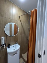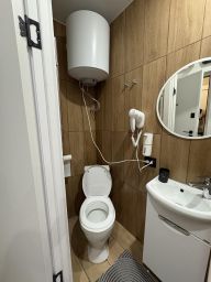 Нам не страшны сезонные отключения горячей воды. К вашим услугам накопительный водонагреватель. В ванной установлена стиральная машинка, душевое ограждение, раковина с дозатором мыла, унитаз, электрический полотенцесушитель.
