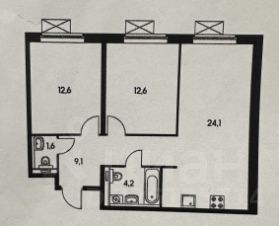 Планировка: просторная кухня-гостиная 24 метра, спальня, детская по 12,5 метра, два санузла, крупноформатные окна. Квартира теплая и светлая.