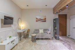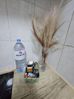 Комфортная кухня-гостиная: Полностью оборудована - вся необходимая посуда, новенький чайник, фильтр для питьевой воды со свежим картриджем. - Приветственный комплимент: чай, кофе, сахар, соль, перец, масло, конфетки и бутилированная вода.