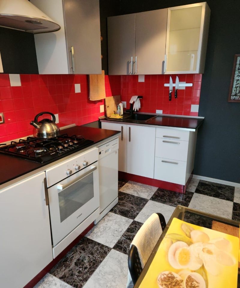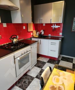 Квартира полностью готова к проживанию и оборудована всем необходимым. В комнатах и на кухне есть вся необходимая мебель. Для вашего комфорта установлены кондиционер и телевизор. На кухне вас ждёт современный холодильник, а в ванной комнате — стиральная машина.Санузел совмещённый в плитке до потолка.