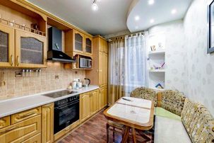 В кухне плита, духовка, микроволновая печь, холодильник, телевизор. Есть вся посуда для приготовления и принятия пищи.