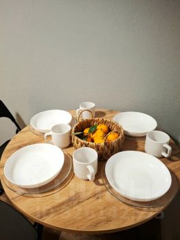 В квартире есть все необходимое для проживания 4-х человек. Для сна предлагаем кровать king-size с ортопедическим матрасом и диван-кровать для двоих, везде постельное белье отельного качества из сатина. Бесплатный wi-fi. На кухне есть плита, микроволновая печь, стиральная машинка, фильтр для воды, чайник и вся посуда и приборы для приготовления пищи. В ванной есть туалетные принадлежности, бумага, полотенца для каждого гостя, фен. Утюг и гладильная доска в наличии