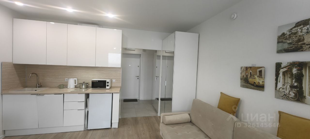 Сдаётся большая квартира-студия с мебелью, двумя просторными шкафами с вешалками, диваном, стиральной машиной, холодильником, чайником, микроволновкой, посудомоечной машиной, мощным Wi-Fi роутером.