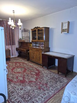 В большой комнате гардероб полированный, буфет, пианино,стол,тумба, бу холодильник.В спальне 2х сп.кровать, новый шкаф для одежды, тумба с ящиками Икеа, ж.столик и ТВ "Сони" с пультом. Торшер Икеа, пылесос.В маленькой комнате диван Икеа, журн.столик и тумба бельевая. В прихожей трильяж, встроенный шкаф для обуви.